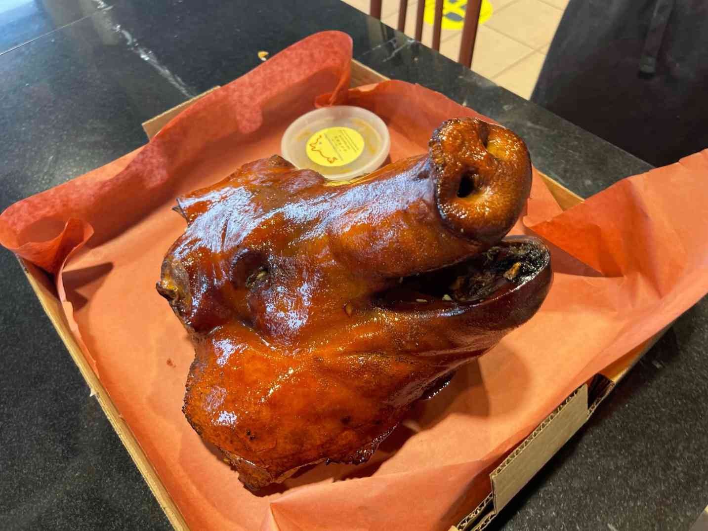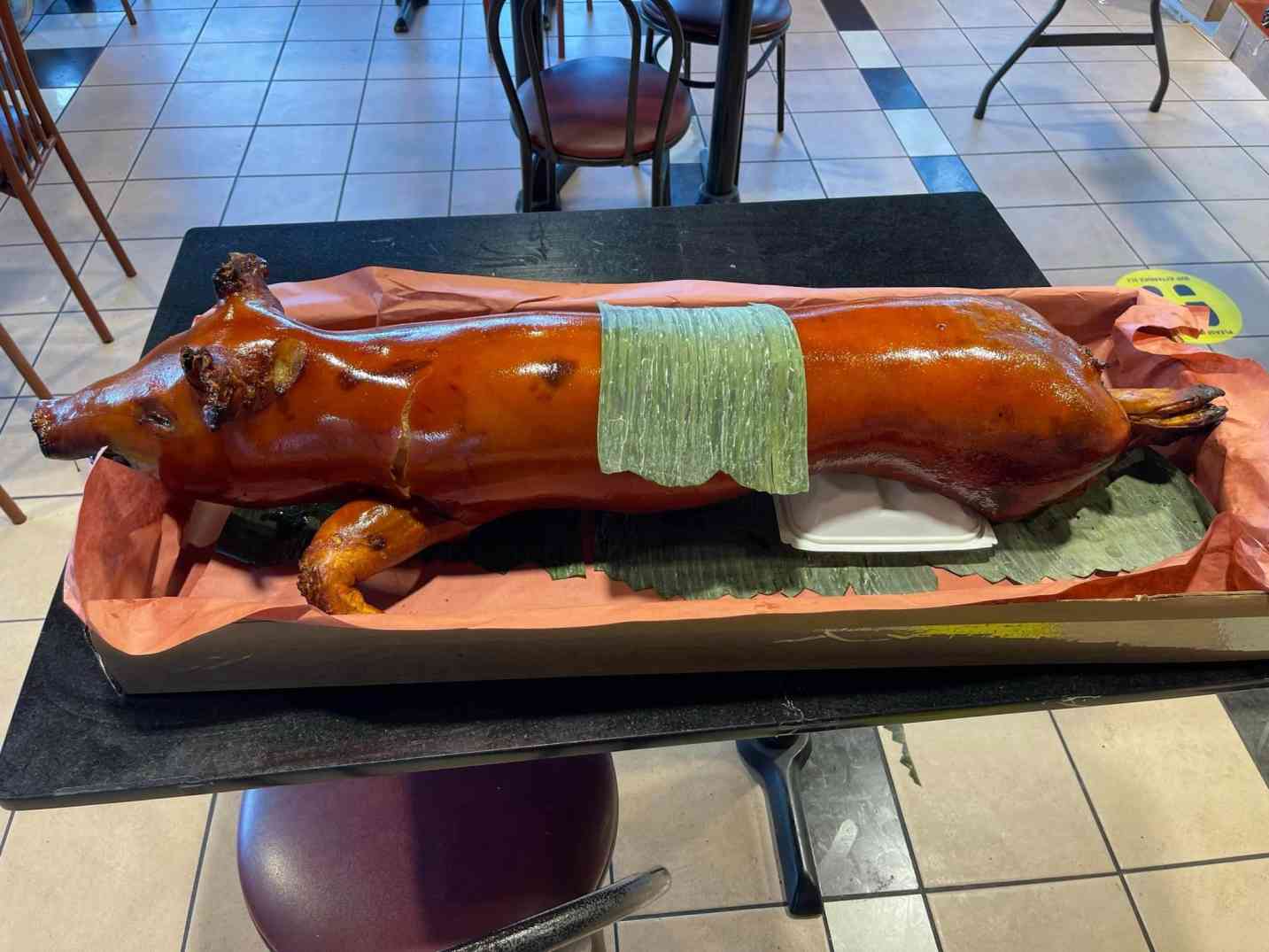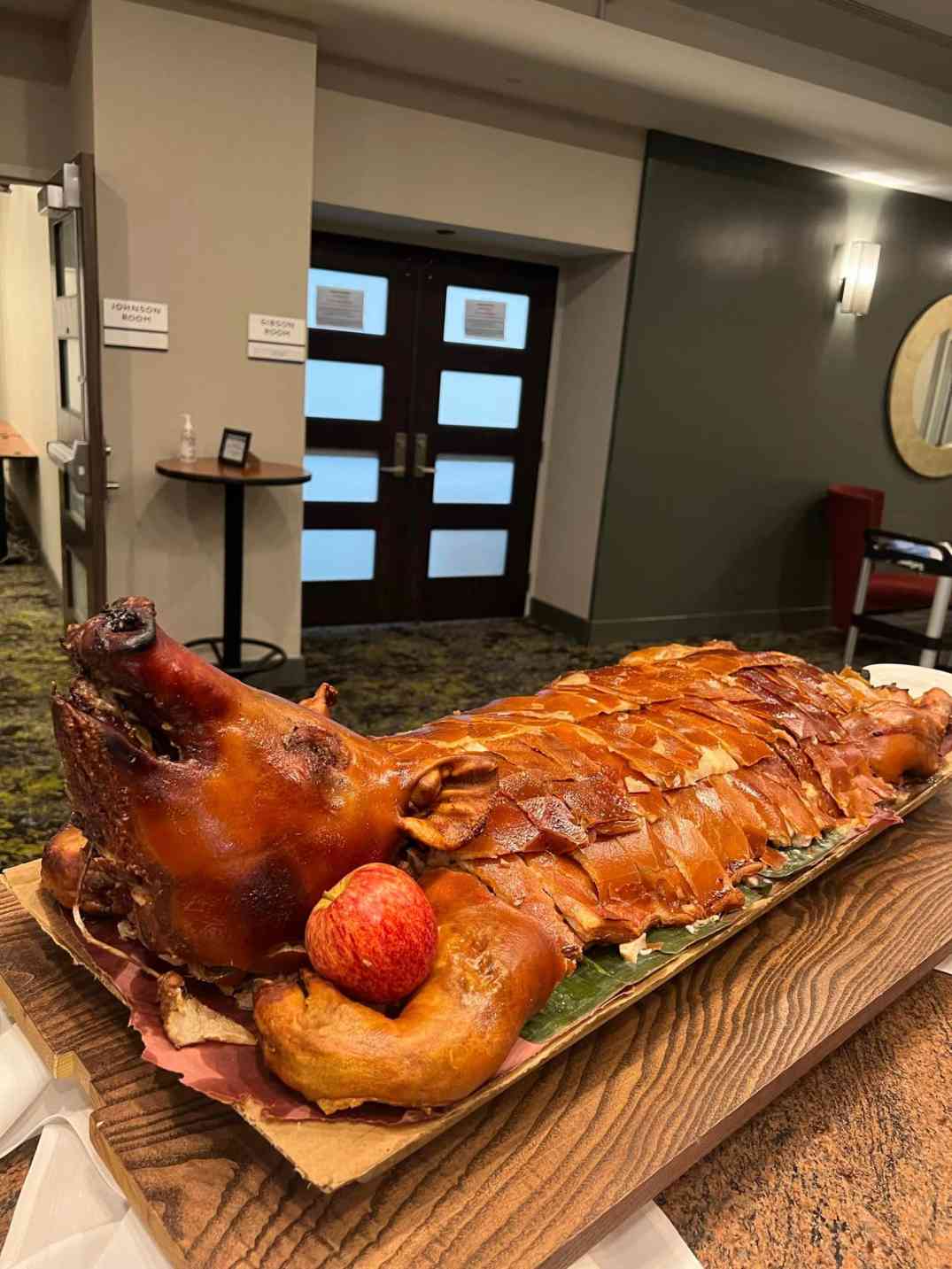 Serving lechon and other Filipino foods.