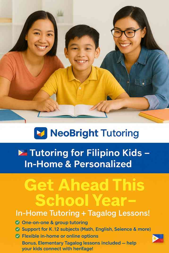 At NeoBright Tutoring, we help students excel and gain confidence through personalized, in-home support. From math and science to English and Tagalog, our tutors create custom learning plans that make school easier and the future brighter.
