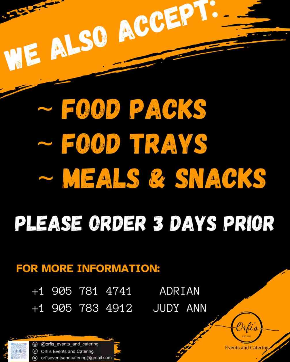 Treat your guests to authentic Pinoy flavors only from Orfi’s Events and Catering where great food meets exceptional service.