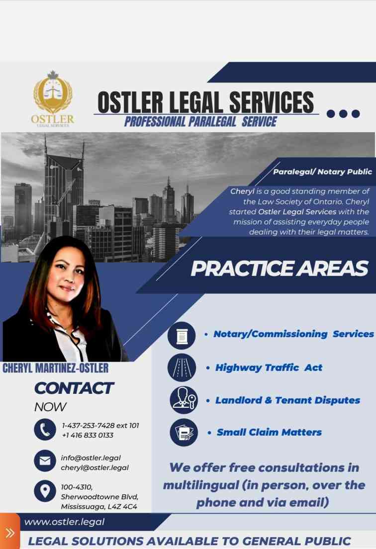 Ostler Legal Services provides services in regards to Traffic ticket matters, Small Claims, Landlord and Tenant matters, Human Rights, Criminal law – Summary offences and Notary and commissioning services.